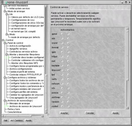 De forma predeterminada el Kernel estará configurado para cargar todos los módulos durante el arranque del sistema. Recompilar el Kernel excluyendo los módulos no utilizados liberará una cantidad importante de memoria física y recursos, aunque requerirá que el usuario tenga conocimientos acerca de que módulos realmente necesita el hardware de la PC. Para un usuario neófito esto puede resultar demasiado complicado. Sin embargo hay otra forma de liberar memoria y recursos y es desactivando los servicios o demonios que no se necesitan y Linuxconf permitirá hacerlo de forma segura.